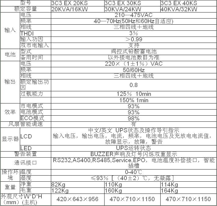 整机效率高达93%;提供ECO模式,使效率高达98%以上,降低了UPS的电力损耗。