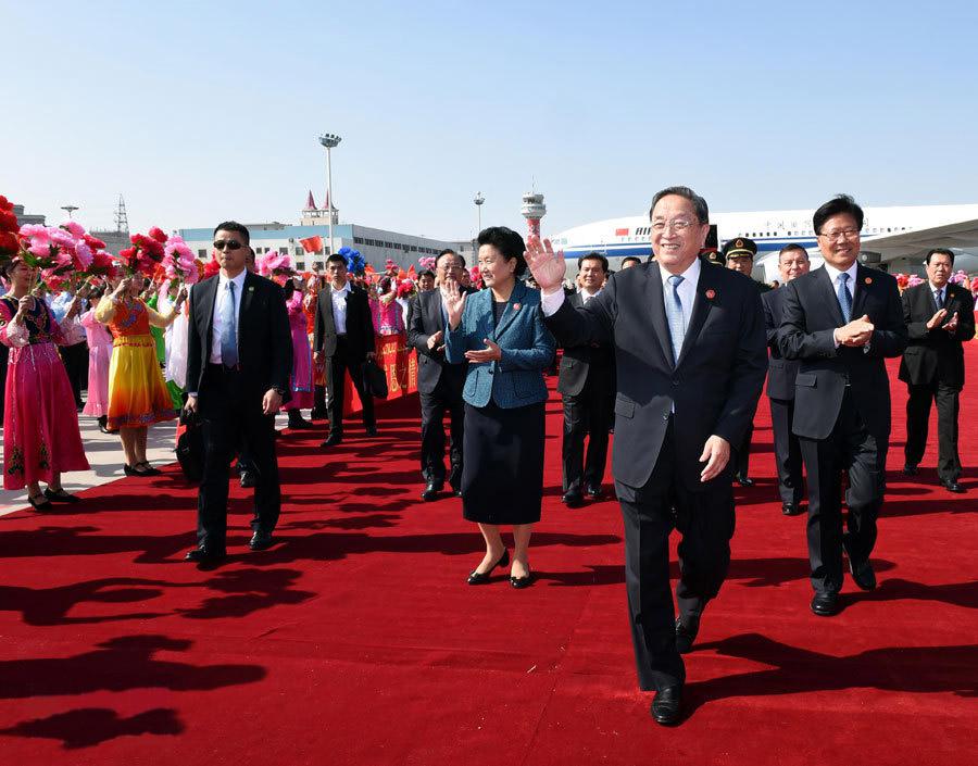 9月25日,带着党中央和习近平总书记的亲切关怀,满载全国各族人民的深情厚谊,以中共中央政治局常委、全国政协主席俞正声为团长的中央代表团飞抵乌鲁木齐,出席自治区成立60周年庆祝活动。由解放军军团、儿童、各族干部及各界群众组成的1000多人欢迎队伍,挥舞着五星红旗和花束彩带,打起手鼓、跳起欢快的迎宾舞,迎接中央代表团的到来。